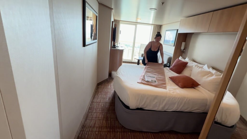 Once onboard, we headed to our muster station, checked in, and then went straight to our room. One thing we love—Celebrity lets you access your room right away. No waiting around.